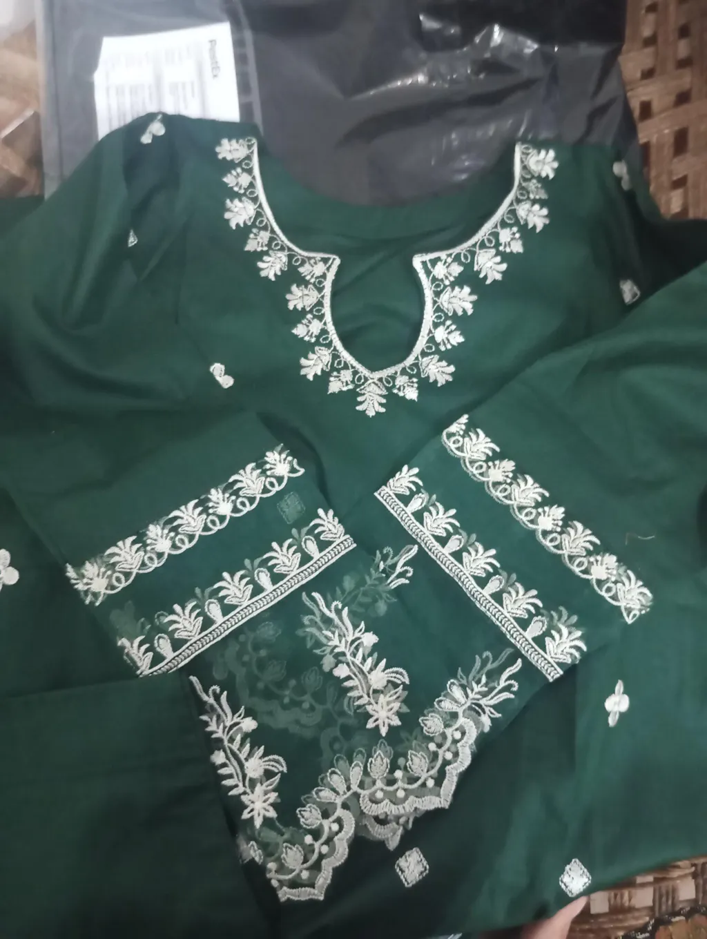 Embroidery: Fine silver thread embroidery scattered across the shirt, with delicate motifs creating a minimal yet sophisticated look.