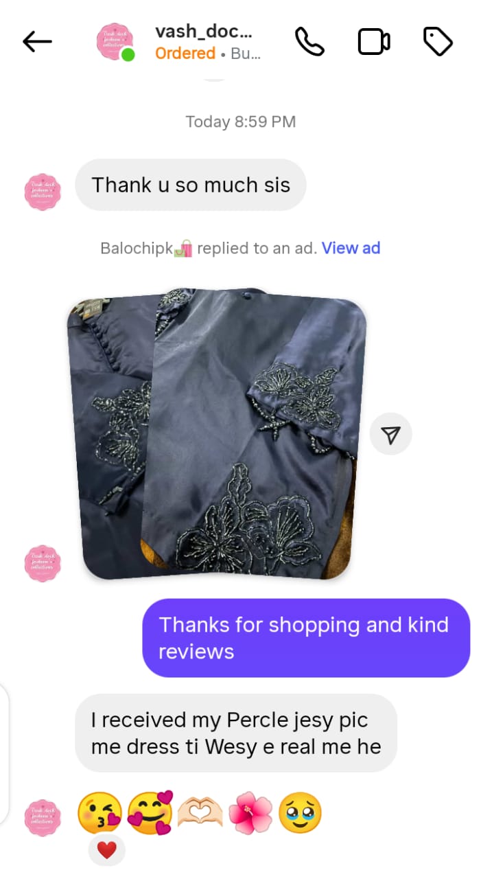 Live Video Call – Shop with Confidence! Not sure about the fabric or color? Book a 1-on-1 live video call and view your chosen dress in real time. Ask questions, see close-up details, and feel confident before you order. Your comfort, our priority.