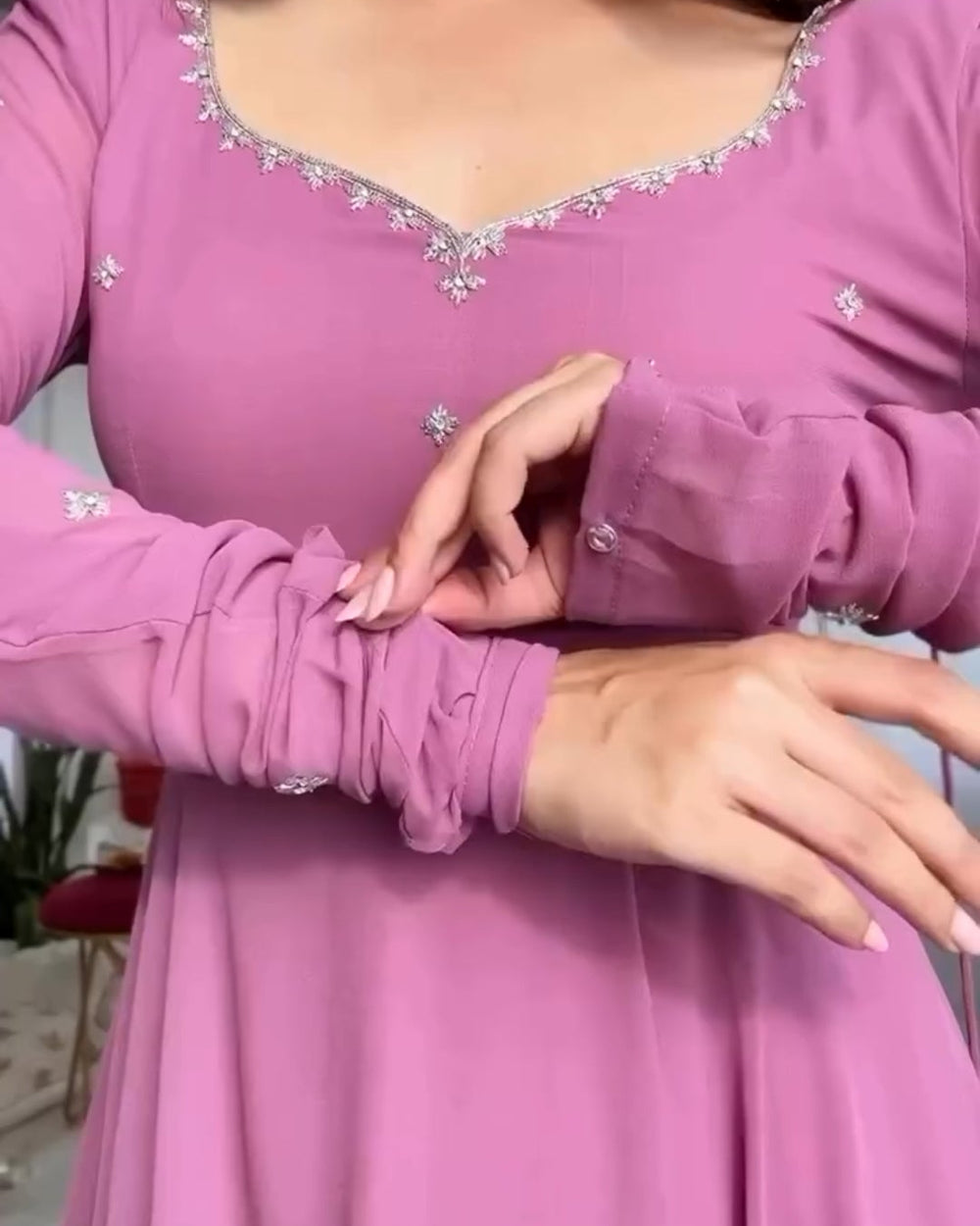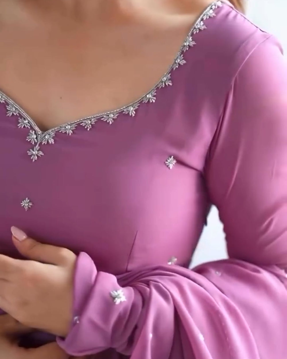 Elegant soft mauve-pink tone in premium georgette fabric