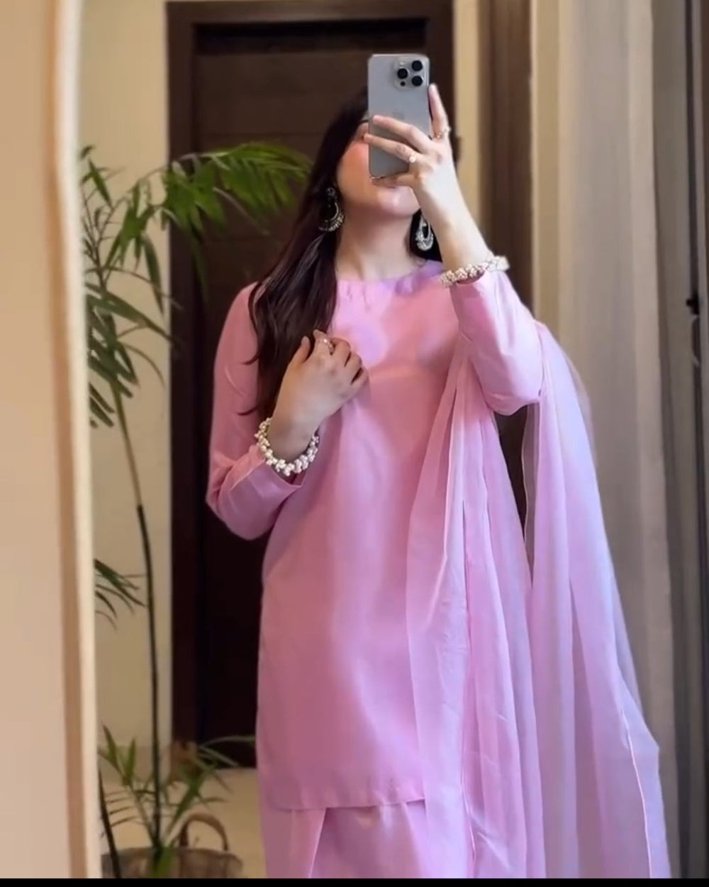 Matching pink Farshi Shalwar style trousers for a regal and traditional touch