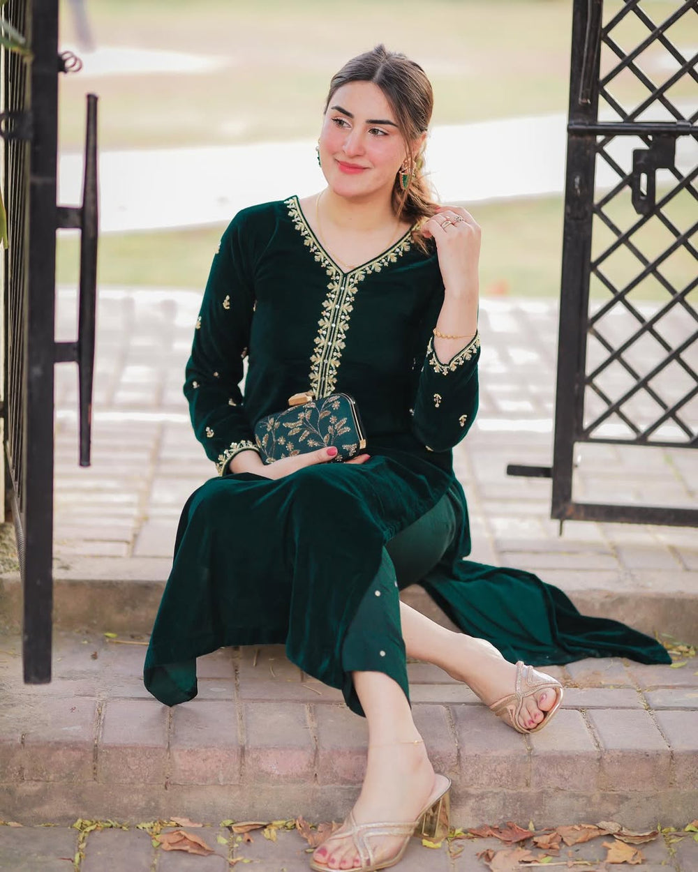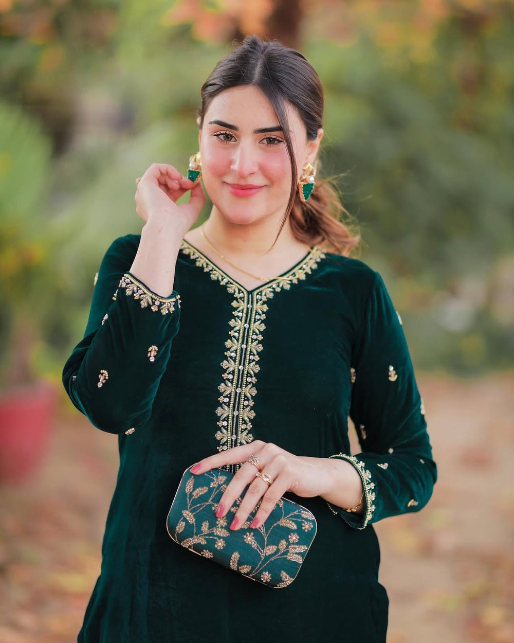Color: Deep emerald / dark green velvet that exudes royalty and sophistication.