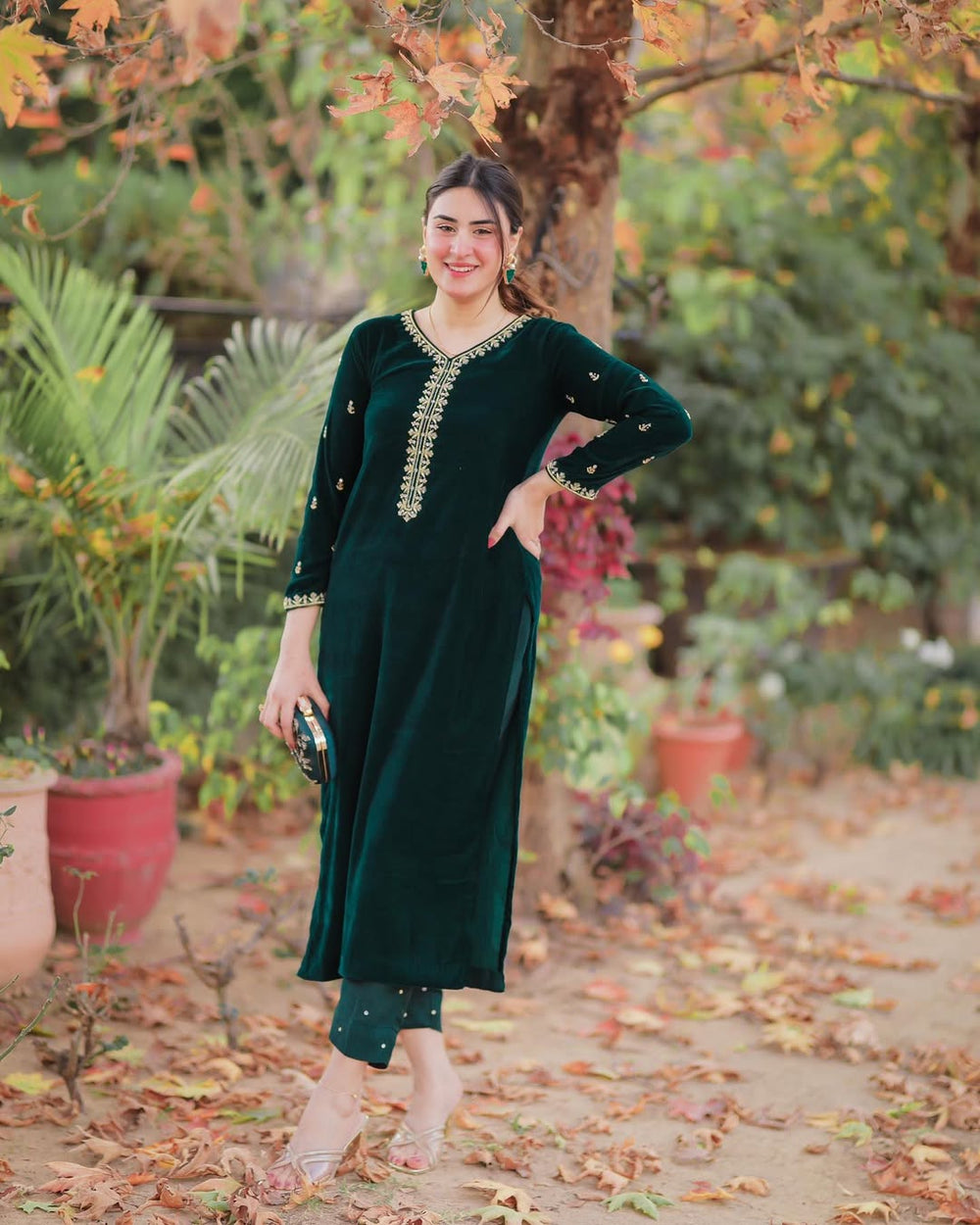Dry Clean Only – to preserve velvet softness, embroidery detail, and color richness.